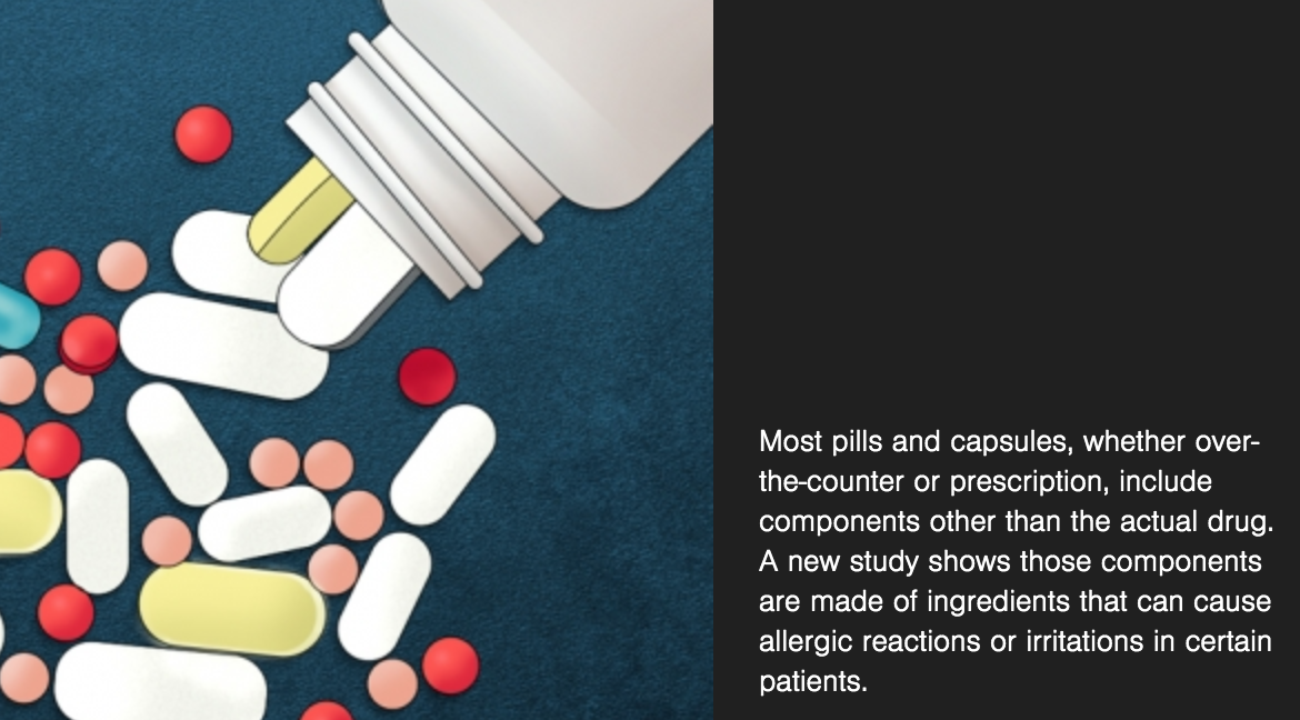 MIT (MASSACHUSSETS INSTITUTE OF TECHNOLOGY) yapılan araştırmada ilaçların kapsül, tablet vs yapısında bulunan ve etkisiz kabul edilen bir şok maddenin ciddi allerjik reaksiyonlara sebep olabileceği gösterildi. Özellikle gluten ve bazı şekerler sindirim sistemi bozukluklarına sebep olabilmekte. Geniş bilgi ilişikteki linkte.