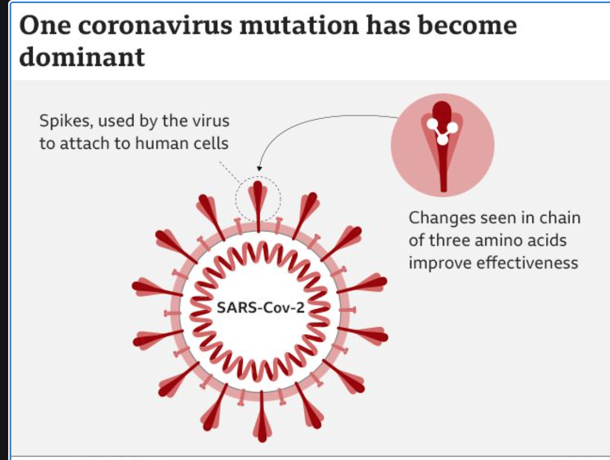 İlk dalga ve son dalga viruslardan elde edilen 5000 genom incelendiğinde ikinci dalgada elde edilen suşların %99.9’unun D614G mutasyonuna uğramış olduğu gözlemlendi. D614G suşu daha fazla taç çıkıntılı ve hücreleri daha fazla enfekte edici bir suş.