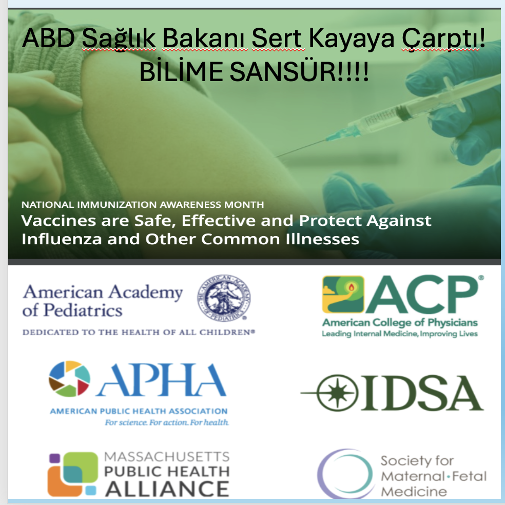 Nihayet ABD yi de bize benzettik. Aşı konusunda istediğini yapmayan bilim kurulu üyelerinin tümünü ABD sağlık bakanı Kennedy görevden aldı. Gerekçe, bilim kurulu üyelrinin aşı üreticileri ile çıkar ilişkilerinin olması ve aşıya olan güveni yeniden tesis etmek!!!